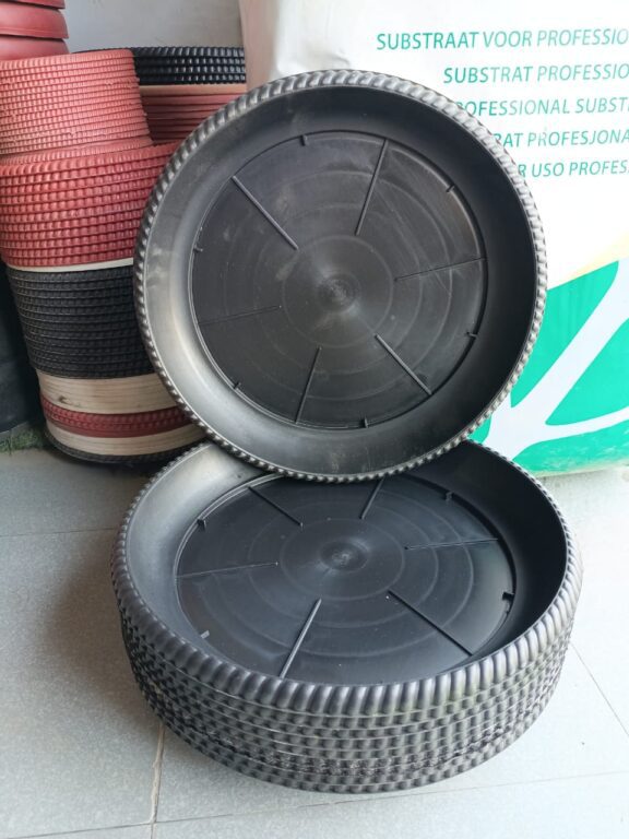 10 Inch Pot Plate for Garden Pots – Heavy-Duty Plastic Base Tray (Black & Red)